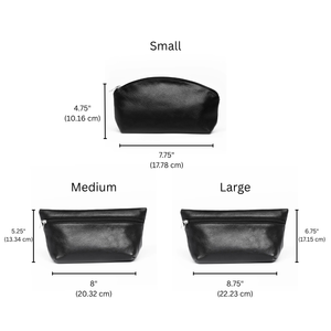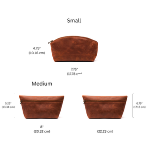 On the hunt for a classic leather cosmetic pouch? Elevate your beauty routine with our artisan-crafted leather makeup bag, available in three versatile sizes to match your lifestyle. Choose the compact small size for everyday convenience, the spacious large for travel adventures, or invest in the complete trio for ultimate organization at home and on the go. Each bag is meticulously handcrafted from premium full-grain leather by skilled artisans, showcasing the authentic character and durability of genuine cowhide. Built to last and designed to impress, this is the makeup bag that grows with your needs.